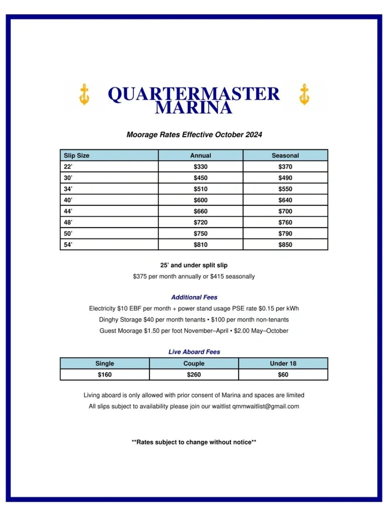 • Monthly Moorage Rates